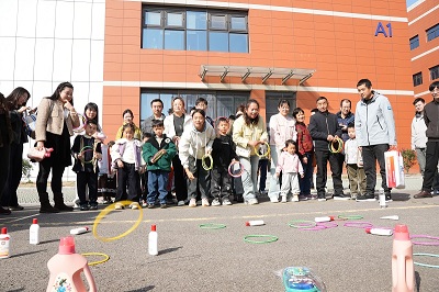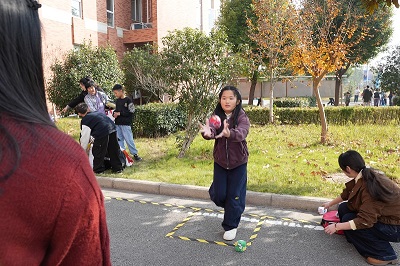 隨后,活動(dòng)進(jìn)入輕松有趣的親子游戲環(huán)節(jié)。在公司大樓門(mén)口,《套圈》《平衡小能手》《文明飛行棋》《信任盲行》四個(gè)游戲區(qū)域同步開(kāi)展。大人和孩子齊上陣,在妙趣橫生的互動(dòng)中協(xié)同合作,加油聲、歡呼聲、笑語(yǔ)聲此起彼伏,現(xiàn)場(chǎng)化身為一片歡樂(lè)的海洋?!短兹Α窋偽蝗藲獗?,彩圈紛飛,喝彩不斷,成為活動(dòng)現(xiàn)場(chǎng)最火爆的風(fēng)景線;《平衡小能手》區(qū)域,孩子們金雞獨(dú)立,目光緊鎖弧線,在晃動(dòng)中精準(zhǔn)捕捉來(lái)球,贏得滿場(chǎng)喝彩;巨型《文明飛行棋》賽場(chǎng)趣味盎然,孩子們擲出骰子,因文明行為前進(jìn),因不良習(xí)慣后退,在游戲中生動(dòng)實(shí)踐了行為規(guī)范;《信任盲行》考驗(yàn)極致信任,蒙眼者無(wú)畏前行,指引者口令清晰,在障礙中攜手共進(jìn),完美抵達(dá)。